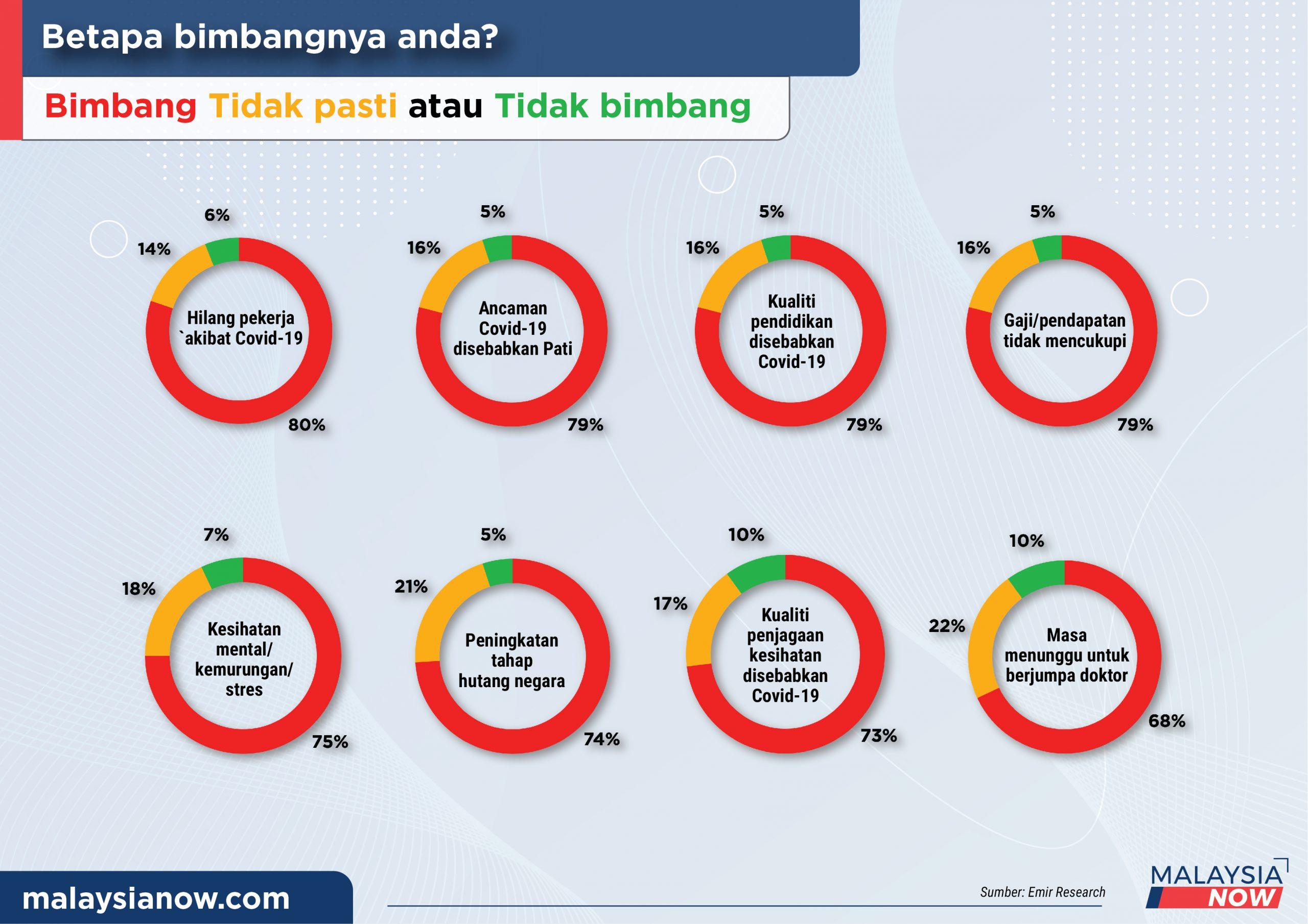 “Ia langsung tidak sama seperti data pada suku ketiga 2020, di mana responden yang dikaji paling optimis tergolong dalam kumpulan bimbang minimum dan majoriti mereka berada dalam kumpulan bimbang sederhana ‘tidak pasti’ mengenai masa depan mereka,” kata Emir Research.