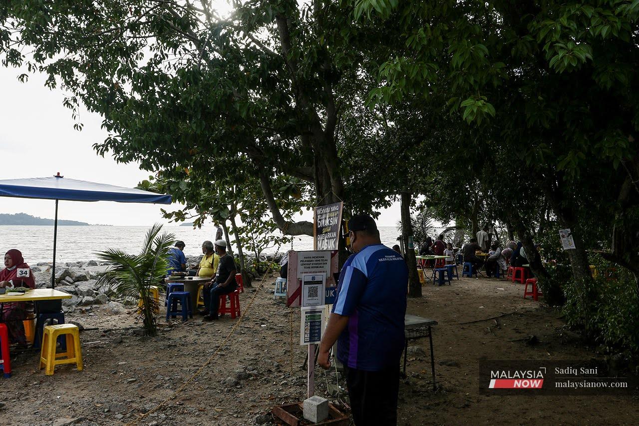 Tidak kurang juga mereka yang menikmati minum petang sambil menikmati pemandangan laut di gerai-gerai berhampiran pantai.