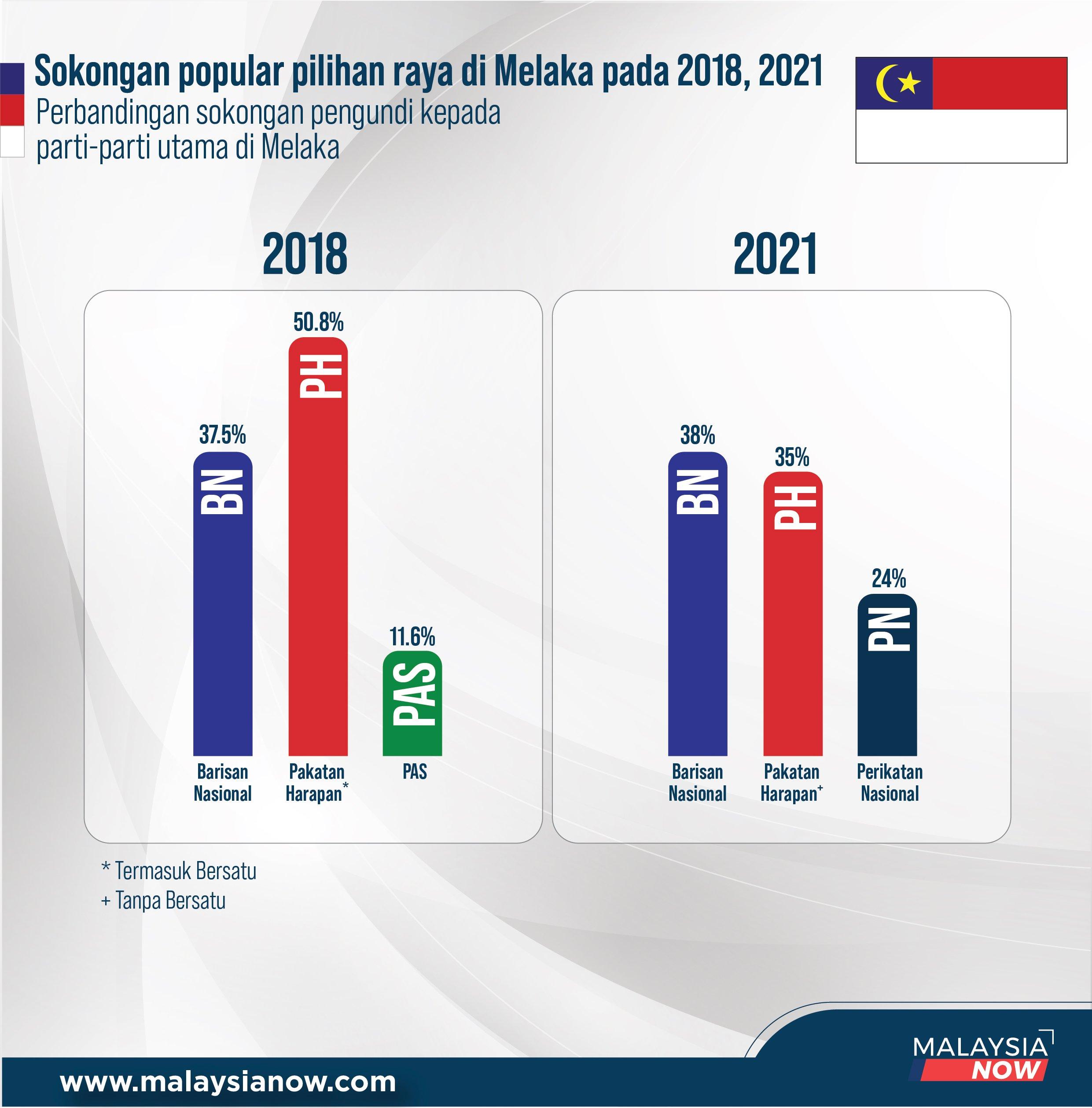 Beberapa penganalisis politik yang dihubungi MalaysiaNow, berkata kemenangan Barisan Nasional (BN) di Melaka sememangnya sudah dijangka memandangkan negeri itu merupakan kubu kuat Umno namun kehadiran Bersatu dilihat berjaya mengutip undi baki Melayu yang tidak menyokong parti itu berbanding PH.