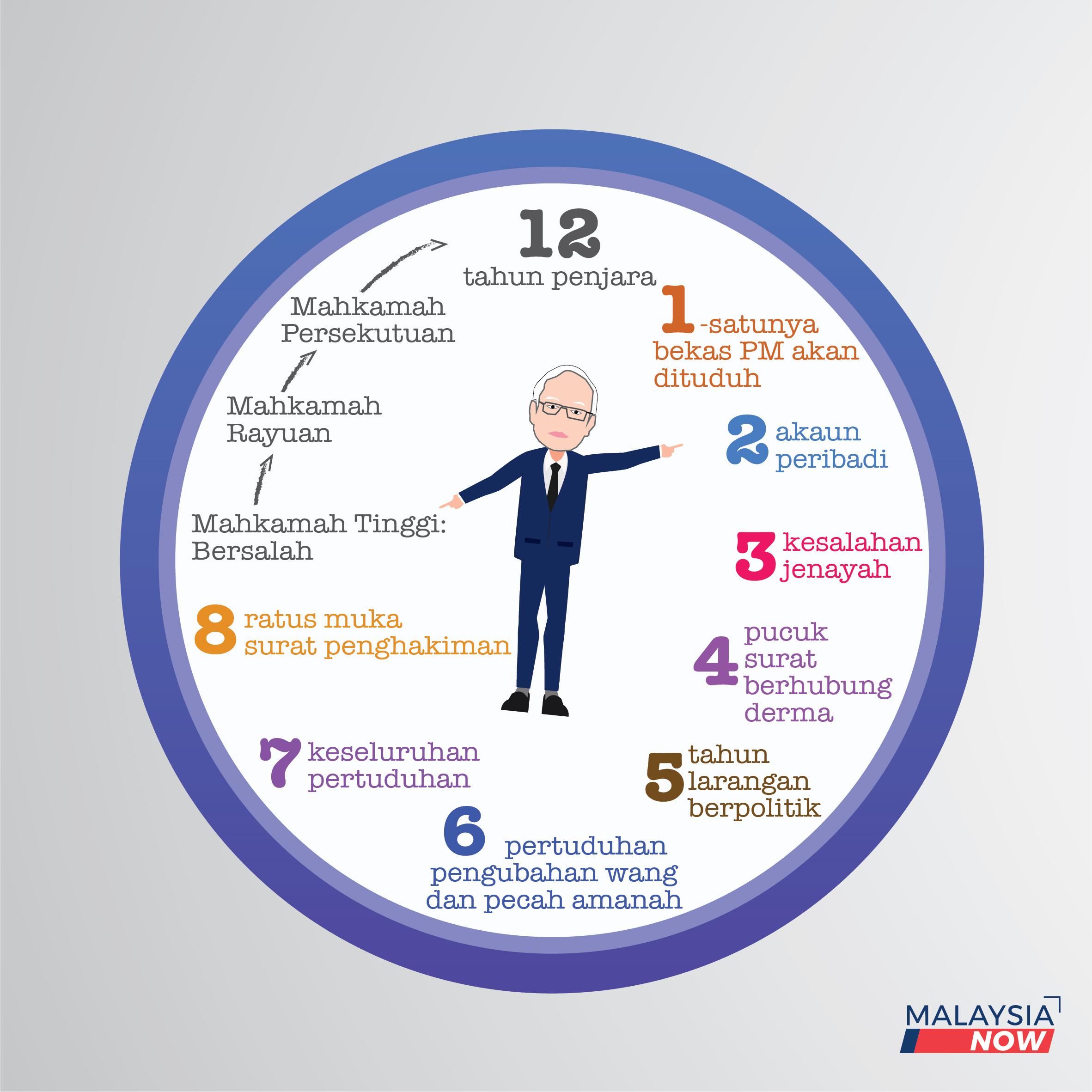 Najib, ahli politik Malaysia paling kanan pernah disabitkan pertuduhan jenayah, didapati bersalah atas tujuh pertuduhan salah guna kuasa, jenayah pecah amanah (CBT) dan pengubahan wang haram.