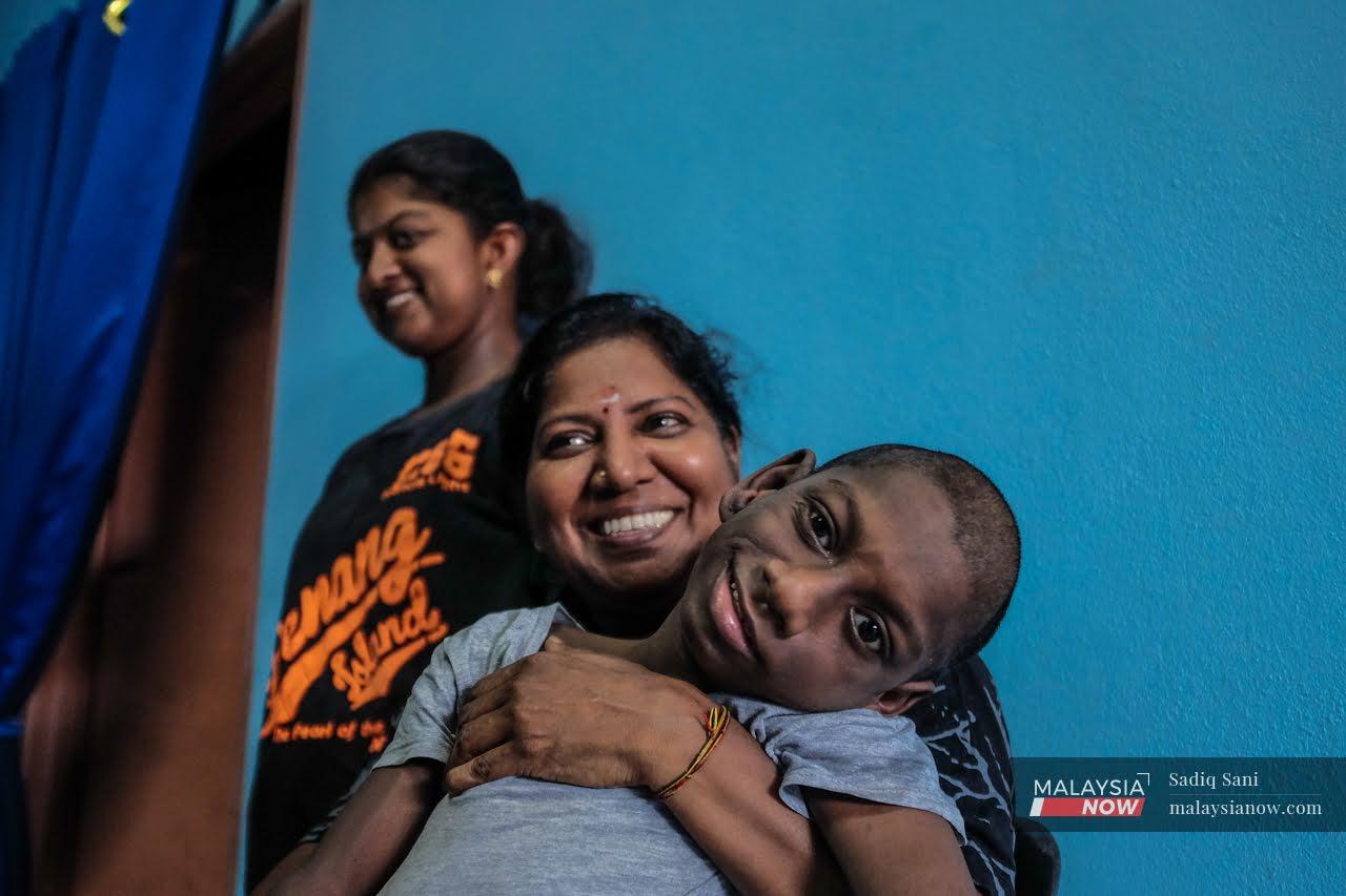 Rutin hariannya dipenuhi dengan tugasan menjaga anak-anaknya, K Thiviyan yang menghidapi cerebral palsy dan K Daarshini, OKU lembam.