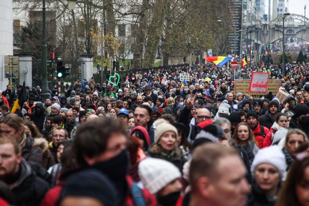 5,000 penunjuk perasaan berarak di Brussels bagi membantah peraturan Covid-19 baru kerajaan Belgium.