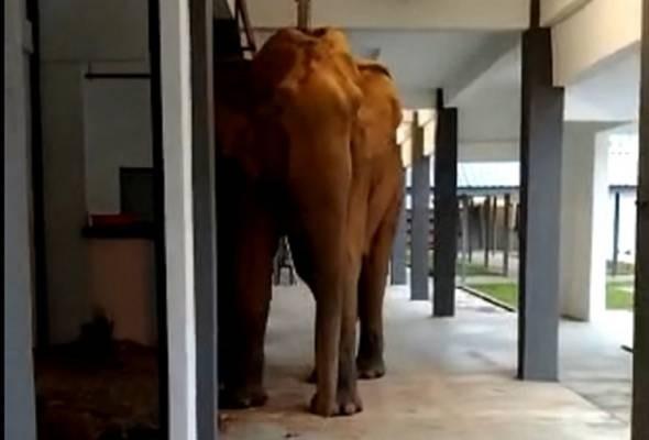 Gajah liar itu merosakkan pagar elektrik yang dipasang di kawasan sekolah.