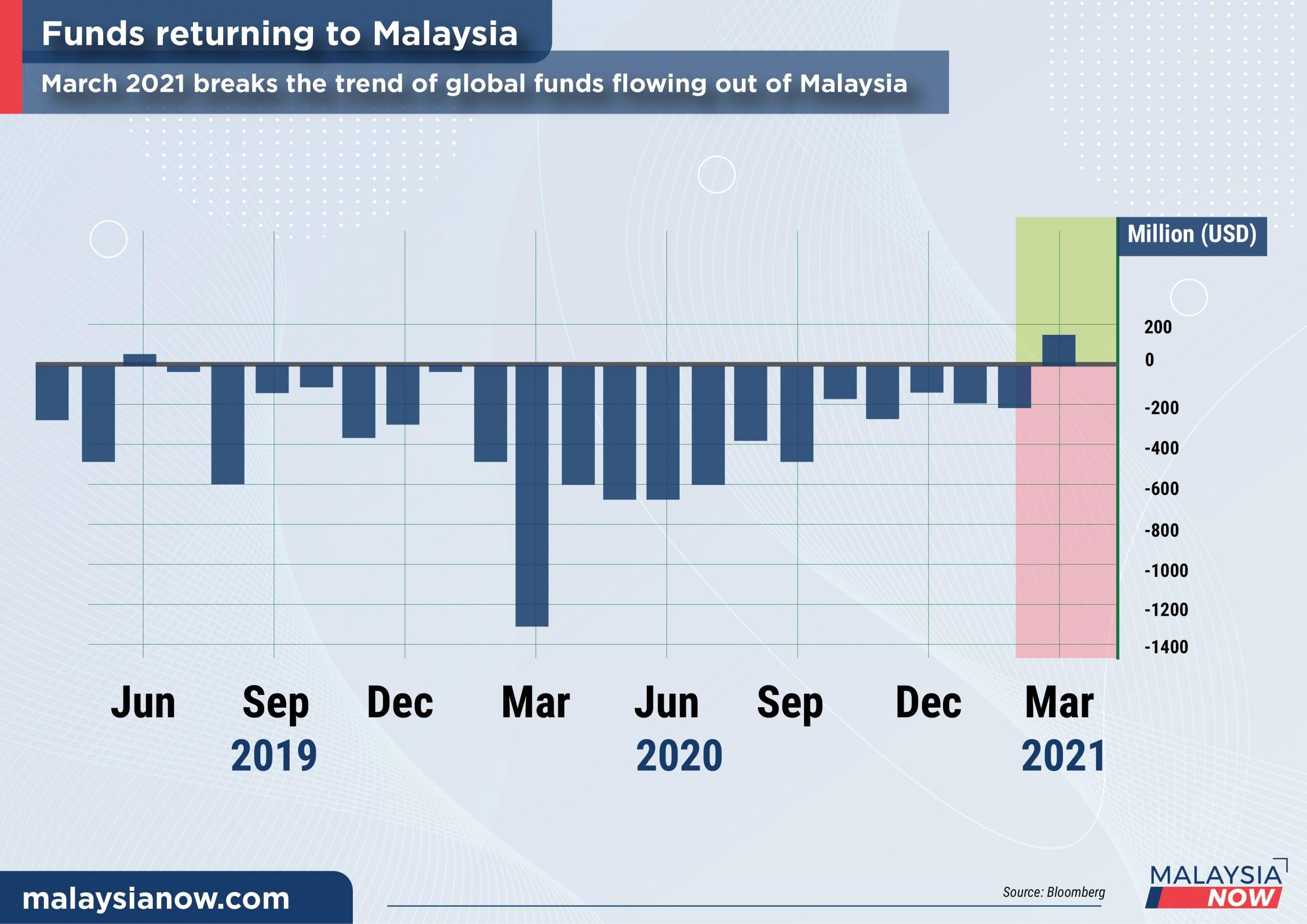 The report said that foreigners turning into net buyers is significant for Malaysia as billions of dollars were pulled out of funds last year, when Malaysia faced a double crisis of politics and public health caused by the Covid-19 pandemic.