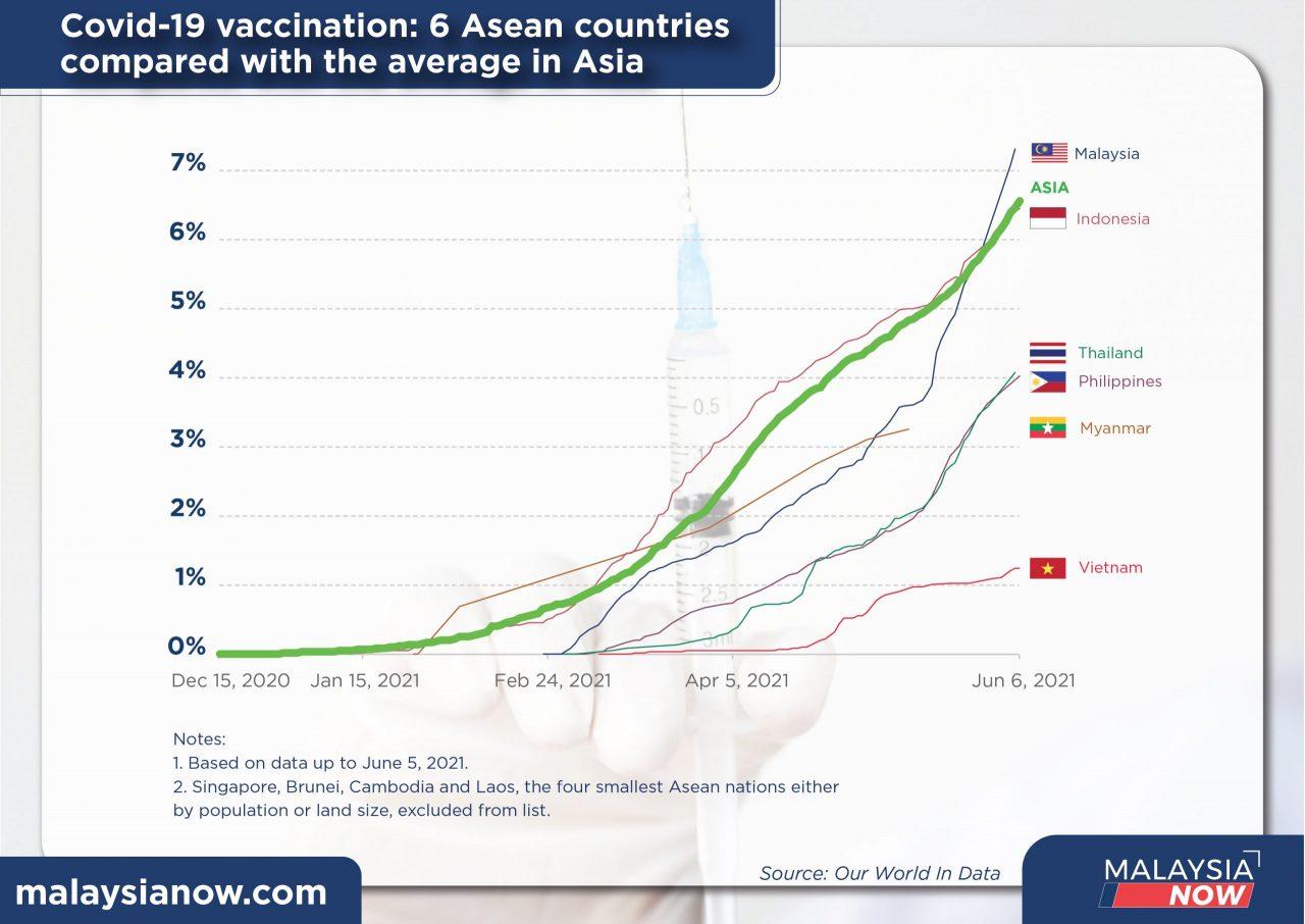 Malaysia’s Covid-19 vaccination rate has overtaken the average rate across Asia, with latest data showing the country is fast outpacing other major countries with vast populations in the Asean region.