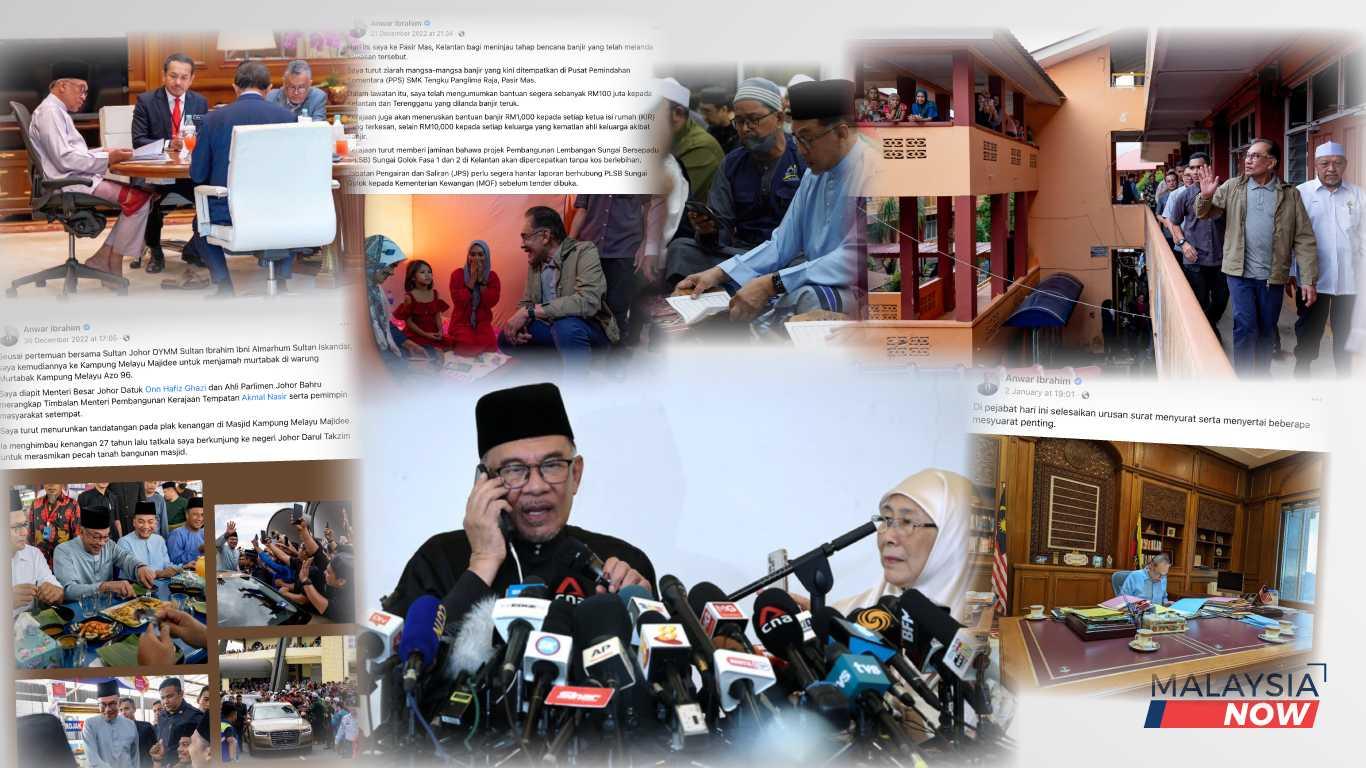 Anwar's swearing-in ceremony, which took place on Nov 24 last year, was followed by pictures on social media showing piles of papers and files on his desk, and posts on how the new prime minister was keeping his nose to the grindstone, even on weekends.