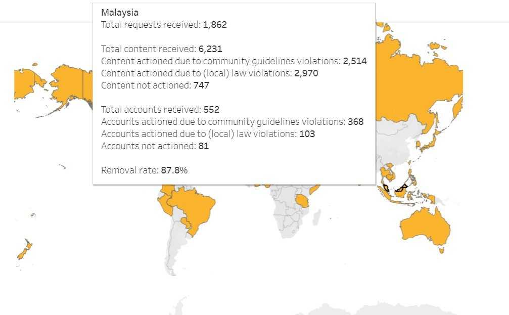 In 2023, Malaysia embarrassingly became world champion with 2,202 takedown requests made to TikTok.