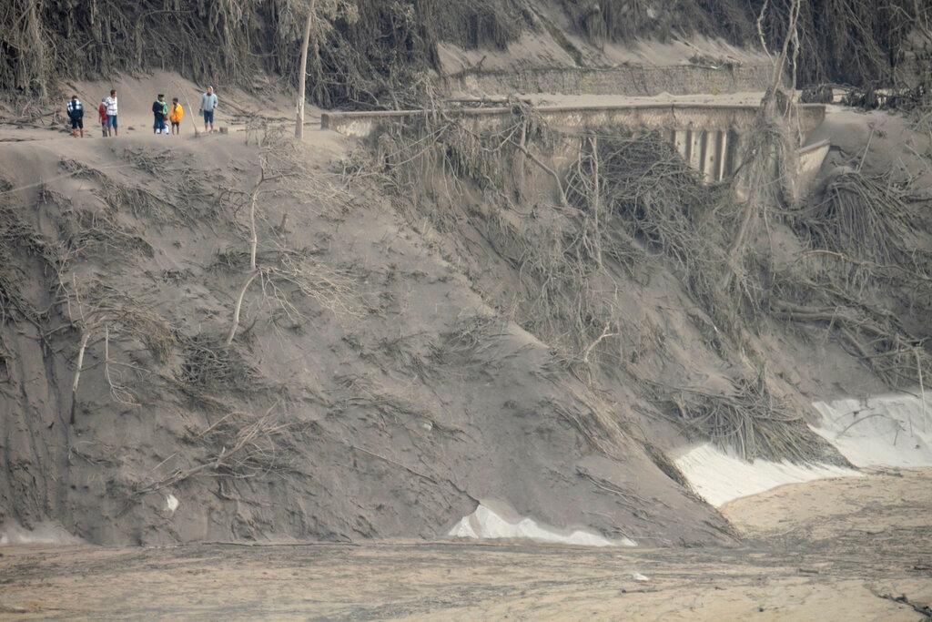 The ash and mud also polluted the waterways around Mt Semeru, turning them into streams of dark grey sludge.