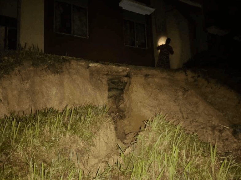 The area, including a caved-in section of road some three metres deep, has been sealed off.