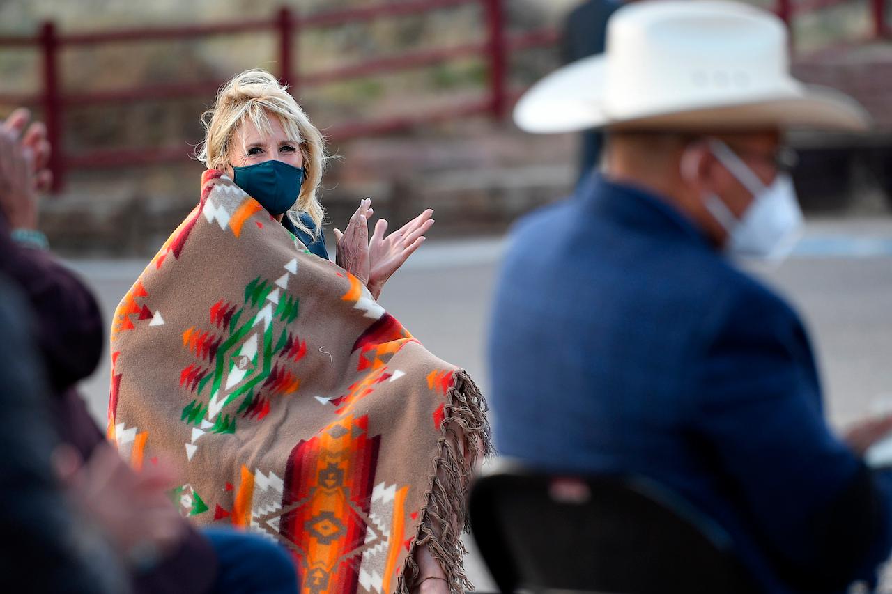 First lady at American Indian reservation as shot-uptake cuts virus deaths