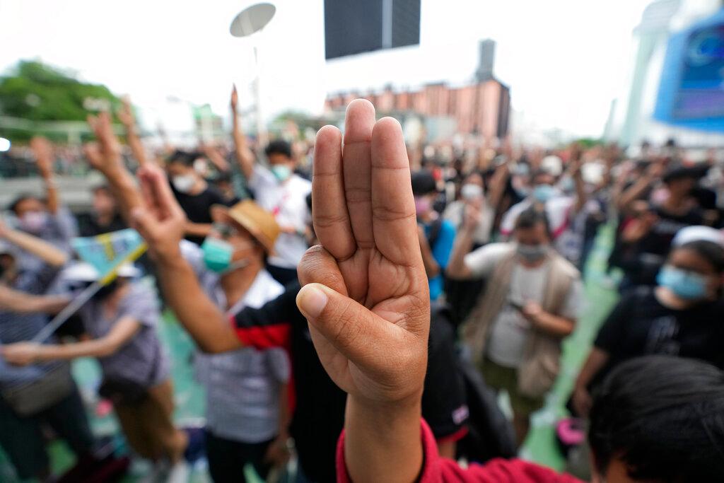 Thai protesters rally again, giving king’s motorcade three-finger salute