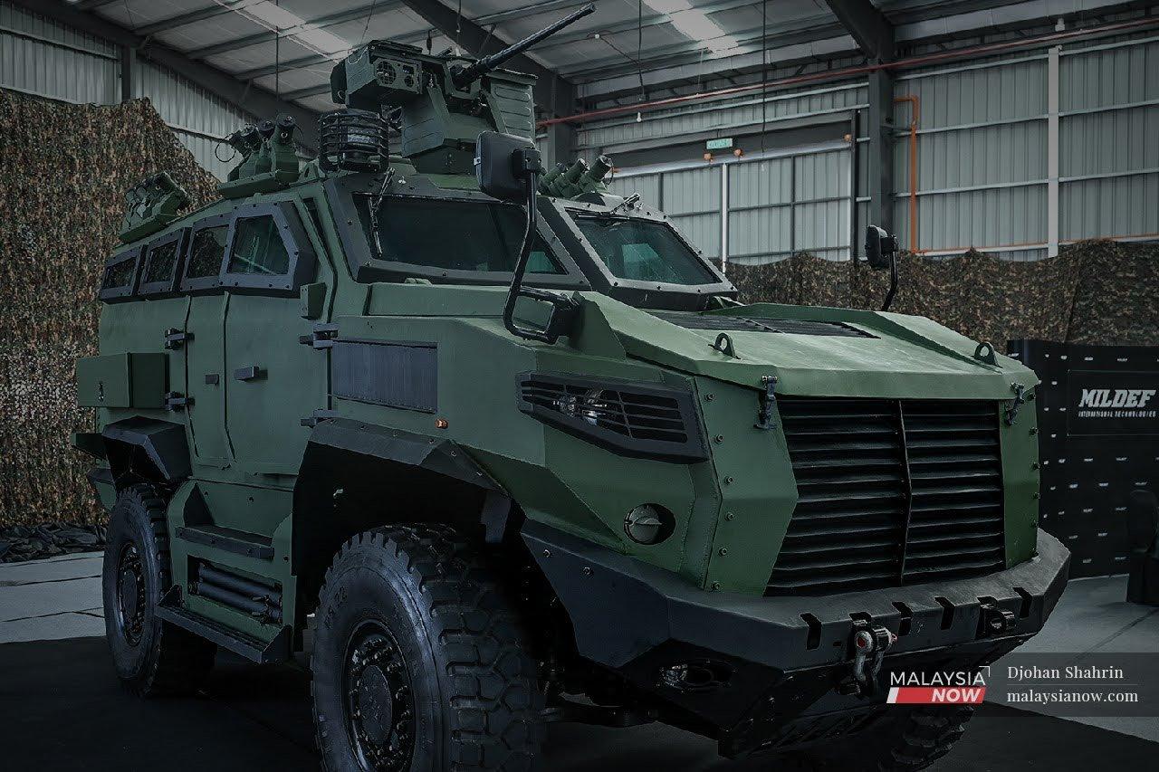 The Mildef HMAV4x4 is equipped with futuristic artillery, grenade and mine blast functions.