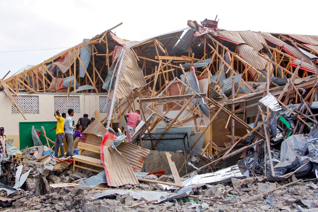 The blast near the K4 junction in the heart of Mogadishu was so large it collapsed the walls of the nearby Mucassar primary and secondary school and also left cars mangled.