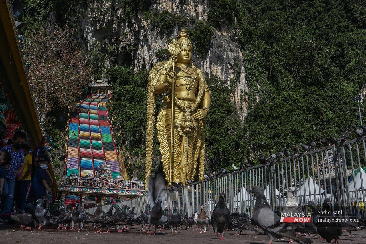 Hundreds headed to the Batu Caves temple complex outside Kuala Lumpur and walked barefoot up 272 multi-coloured steps to reach the site, carrying offerings such as milk pots.